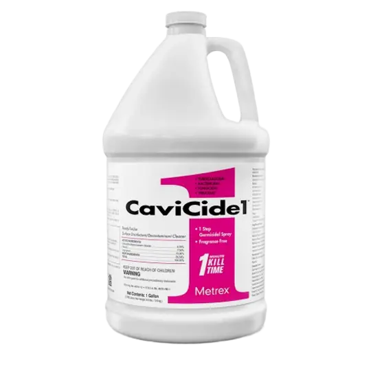 CaviCide1 es una solución desinfectante de nivel intermedio diseñado para la limpieza, descontaminación y desinfección de superficies inanimadas, duras, no porosas en hospitales, laboratorios y otras áreas de cuidados críticos, donde es importante el control ambiental de la contaminación cruzada entre las superficies tratadas. Cavicide1 es ideal para limpieza y descontaminación de las superficies de dispositivos médicos